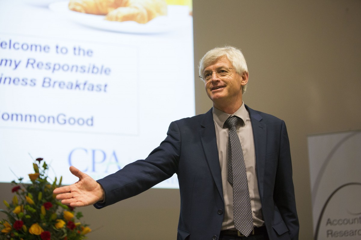 A high-profile guest panel comprising Brendan Jennings, Managing Partner, Deloitte Ireland, and Professor Arnold Smit, Stellenbosch University, South Africa, interacted with local business practitioners and students on questions of what it means for a business to be responsible, and how we might account for such responsibility. The business breakfast was supported by the Certified Public Accountants (CPA) Ireland.