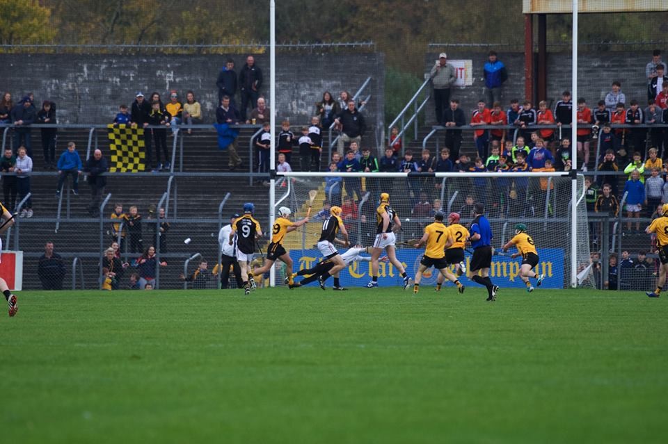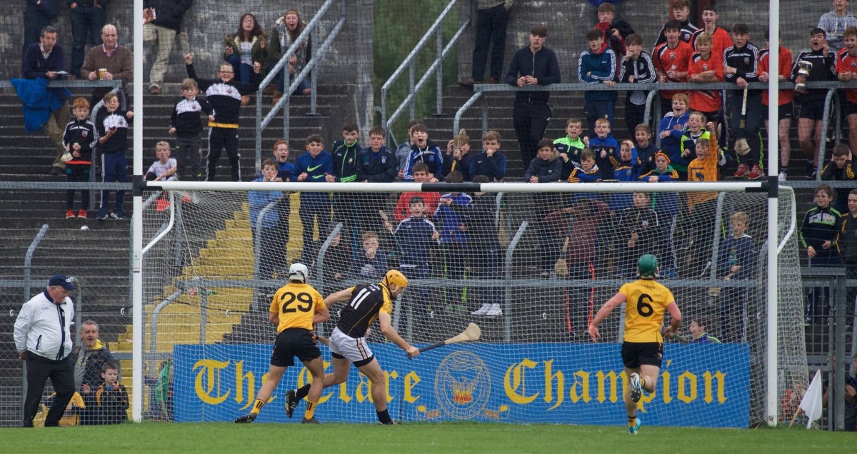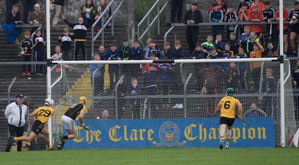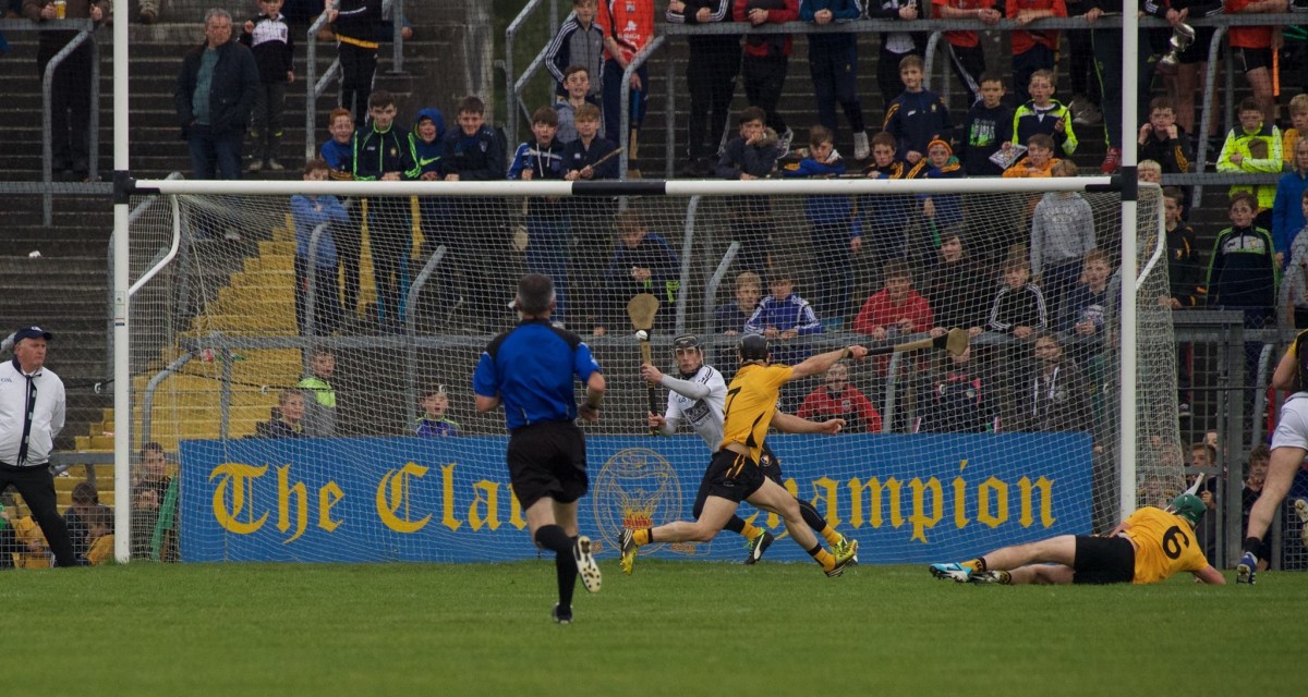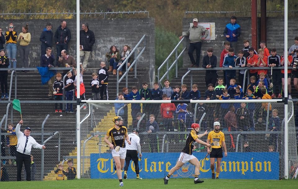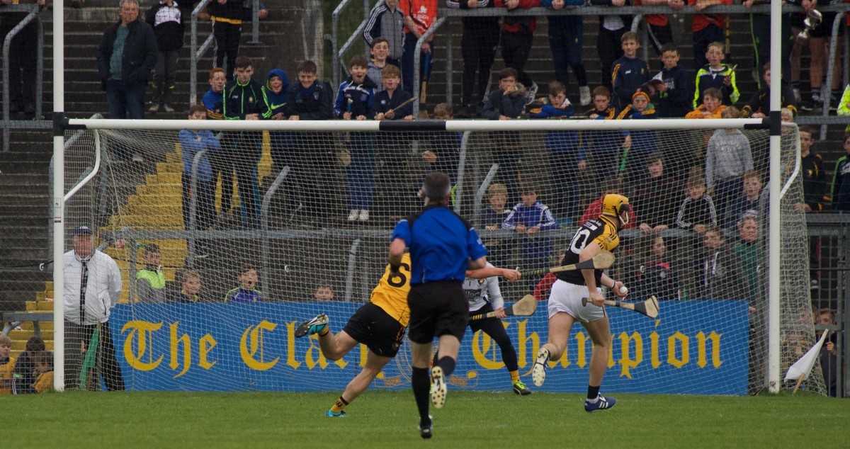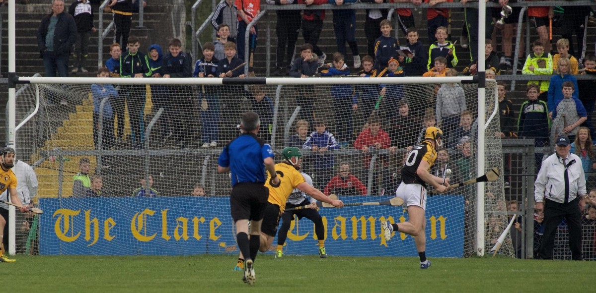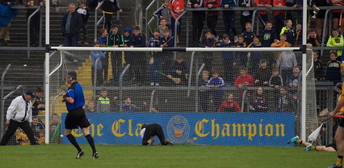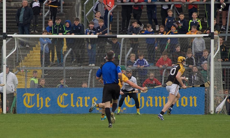 While he didn’t execute his first goal chance, Gary Brennan tapped home his second effort, Martin O’Leary dispossessed Ger O’Connell and put Brennan straight through on goal and the Clare football captain duly flicked the ball to the back of the net.
