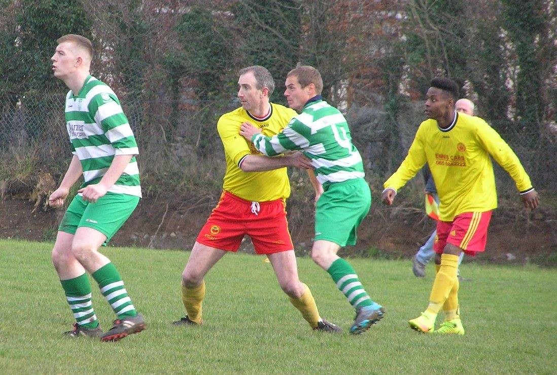 Shannon Olympic: Jason Carmody, Dean Power, David O’Flaherty, Wayne Regan, BJ Cantillon, Derek Maxwell, Adrian Carew, Ryan Kelly, Sean Burke, Jason Regan, Ray Quigley. Subs: Wayne Ryan, Jack Arra, Rachid Amalla and Craig Murphy