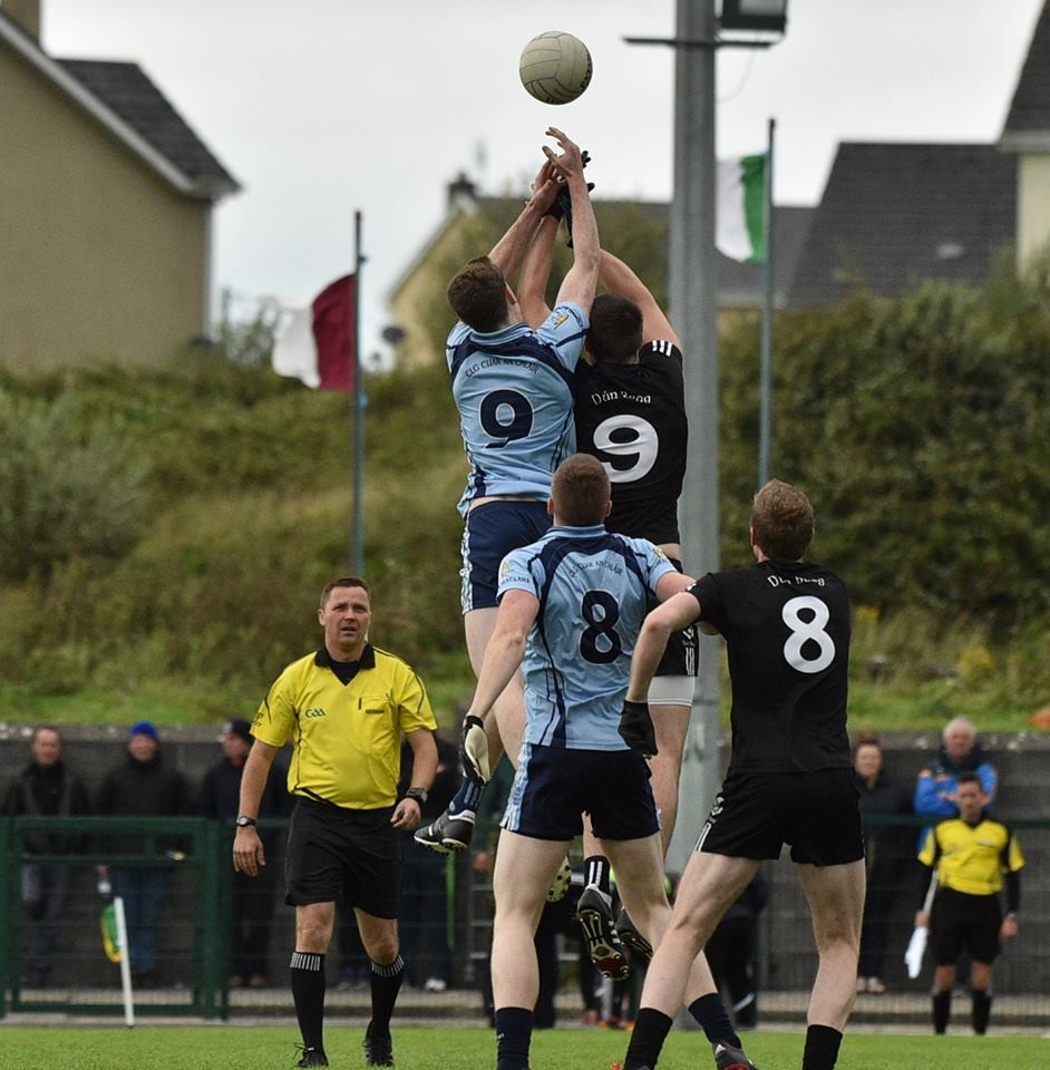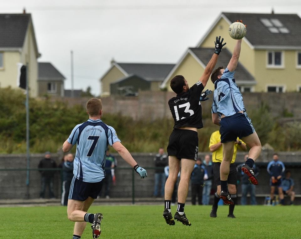 Joe Blake had the first chance of the game with less than a minute played but his effort tailed wide. The resulting kickout was fielded superbly in the air by John Looney who fed the ball to Rory Donnelly in the full-forward line, the former County man burned the Doonbeg defence and fired past Eamon Tubridy for the opening goal of the game with just over one minute played.