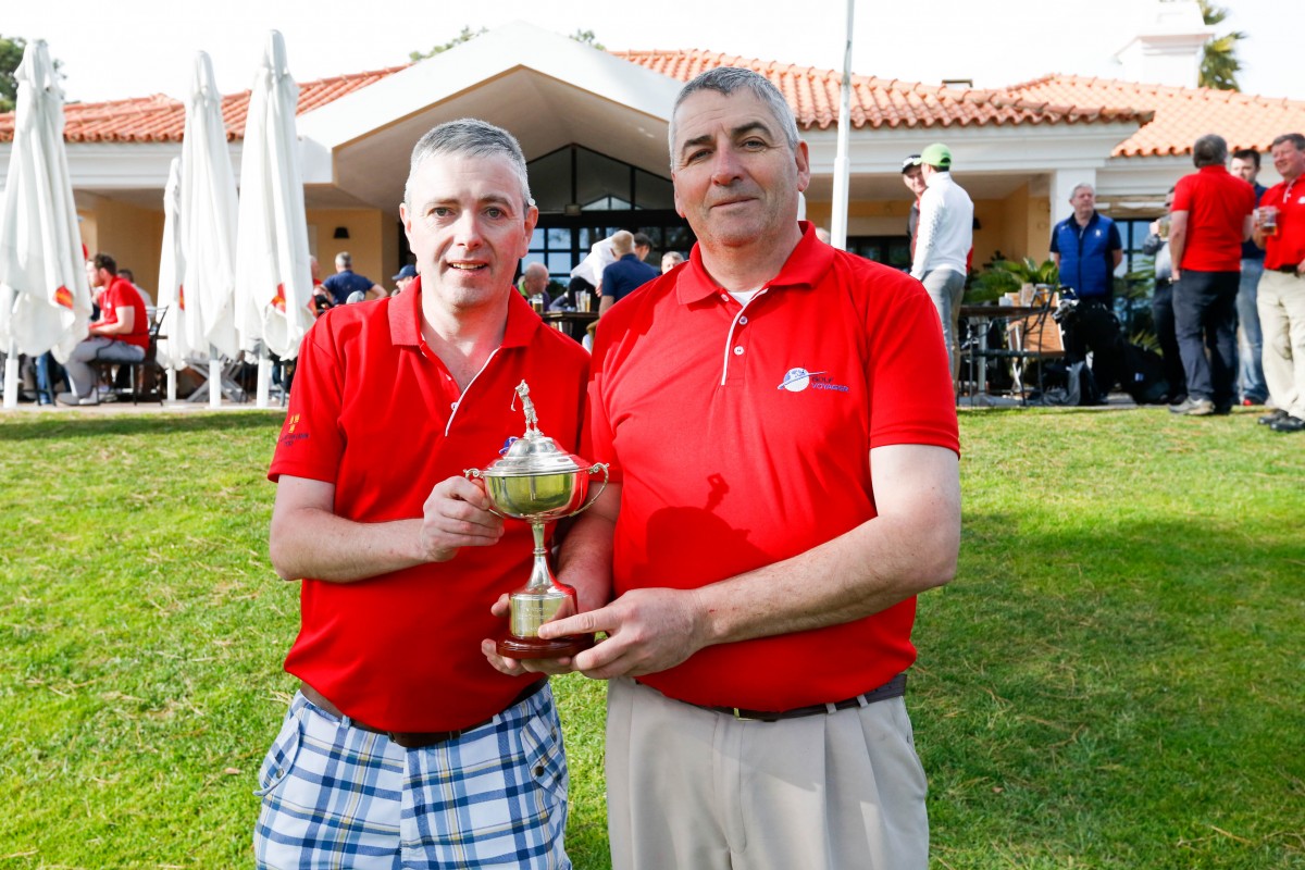 After two days of competitive play, it came down to a playoff to decide both the four-ball and overall team event. Ennis natives Paul Coote and Adrian Kearney showed consistency with two rounds of 39 points to jump from 4th place into top spot on the leaderboard at the challenging Vila Sol course in Vilamoura.