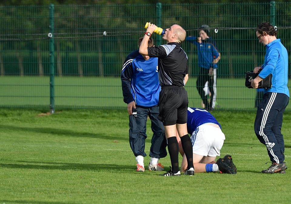 Evan Mc Namara was stretchered off after sustaining a nasty knee injury which resulted in a delay to proceedings. Cian Moloney and Barry Keating were involved in a shoot-off scoring seven out of the next eight scores.