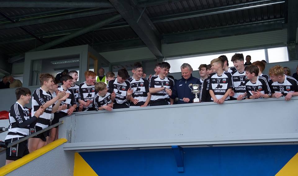 After the game Bord na nÓg Iomáint Cathaoirleach Joe Pender presented the cup to victorious Clarecastle captain, Darragh Healy.