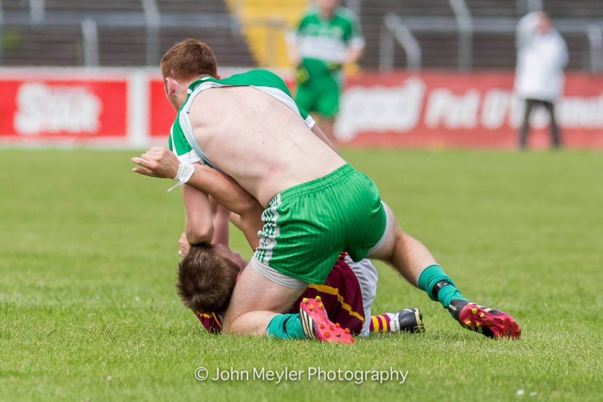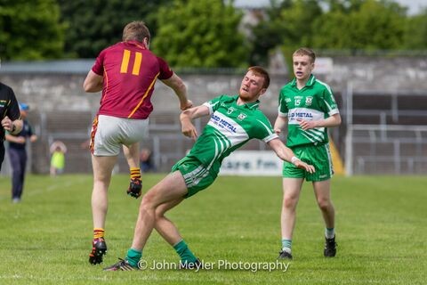 Wolfe Tones: Paul Tuohy; Stephen Carroll, Stephen Tuohy (0-01), Brendan Hughes, Colm McCaul; Ross O’Connor, Sean Brennan, Brian Monaghan; Johnny Bridges, Aaron Brennan; Daniel Galley, Gary Leahy (0-05 4f), Barry Murphy; Brian O’Connor, Darragh Leahy (0-02). Subs: Aaron Rudd for Monaghan (18), Tino Nvuara for Bridges (27), Ian Collins for Gallery (38), Stephen McInerney for Carroll (50), Johnny Bridges for Rudd (50), Dean Devanney for O’Connor (57).