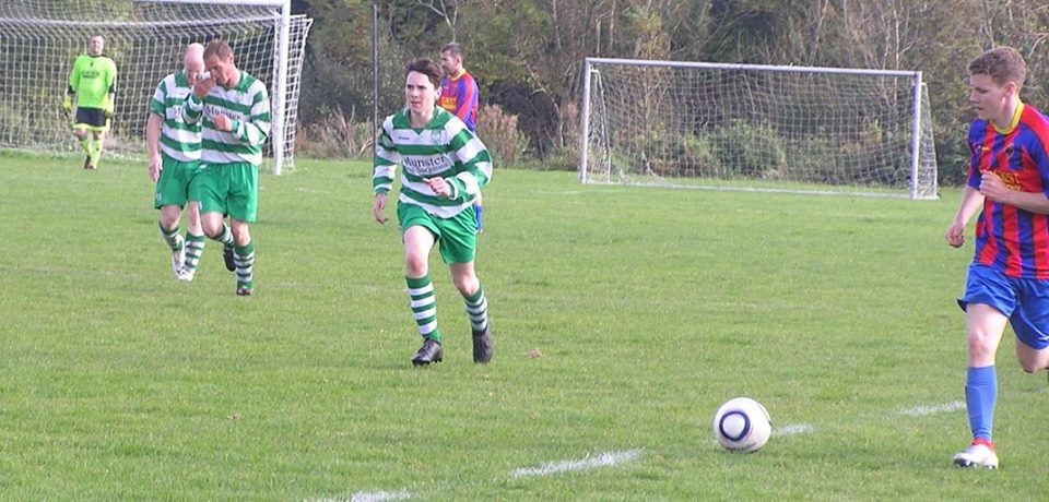 The fourth goal for Newmarket came 10 minutes later when Darren Cullinan clipped a lovely weighted ball down the channel for Hayes to run onto and go round the last defender before scoring at the second attempt after his initial shot was blocked. The fifth goal was a brilliant team goal scored by the very impressive Brian Monaghan when after a well worked move he cut inside and buried his finish to the bottom corner.