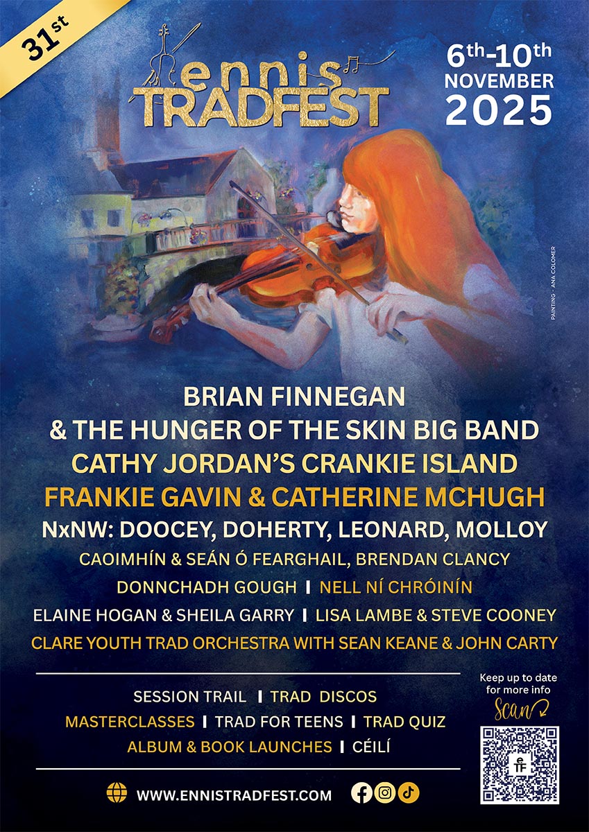 Now in its 31st year, the Ennis Trad Festival returns from November 6th to 10th, once again showcasing Ennis as a vibrant hub for traditional music, song, and culture.