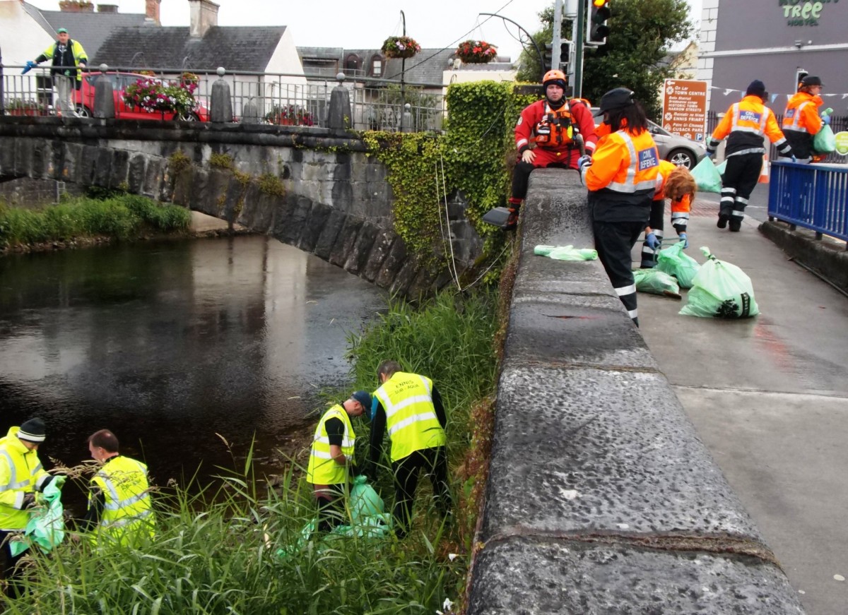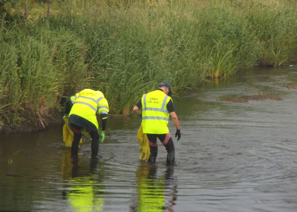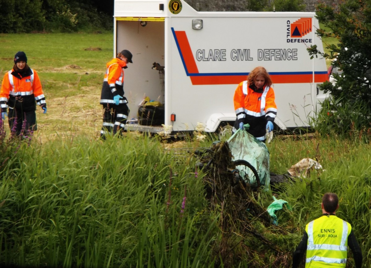 Organised by Clare Civil Defence and Clare County Council, the cleanup was completed by the Environment Section of Clare County Council and was supported by the Ennis Tidy Towns Committee, local volunteers and members of the Ennis Sub Aqua Club.