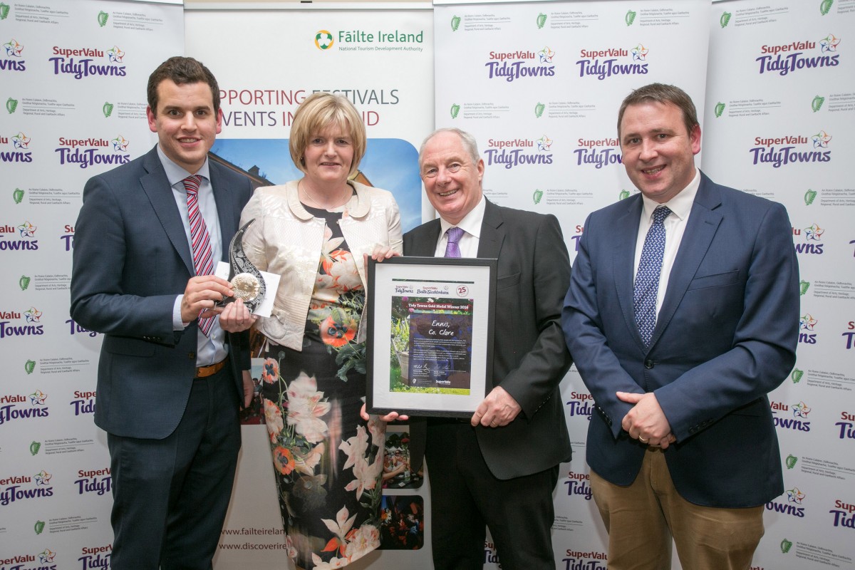 Ennis won the title of Ireland’s Tidiest Large Urban Centre and Listowel, Co Kerry held the title of Ireland’s Tidiest Small Town. Kilrush and Ennis picked up a Gold Medals with Mountshannon the sole recipient of a Silver Medal. Bronze Medals were award to Ballynacally, Ballyvaughan, Kilkee, Quin and Tuamgraney.
