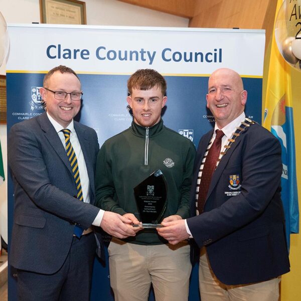Golfer Jonathan Keane received an award for becoming the first Clare-based winner of the South of Ireland Amateur Open Championship at Lahinch Golf Club since 1968. His win, sealed on the 18th hole, prompted celebrations in Kilfenora. He was later selected for the Irish men’s team for the Home Internationals.