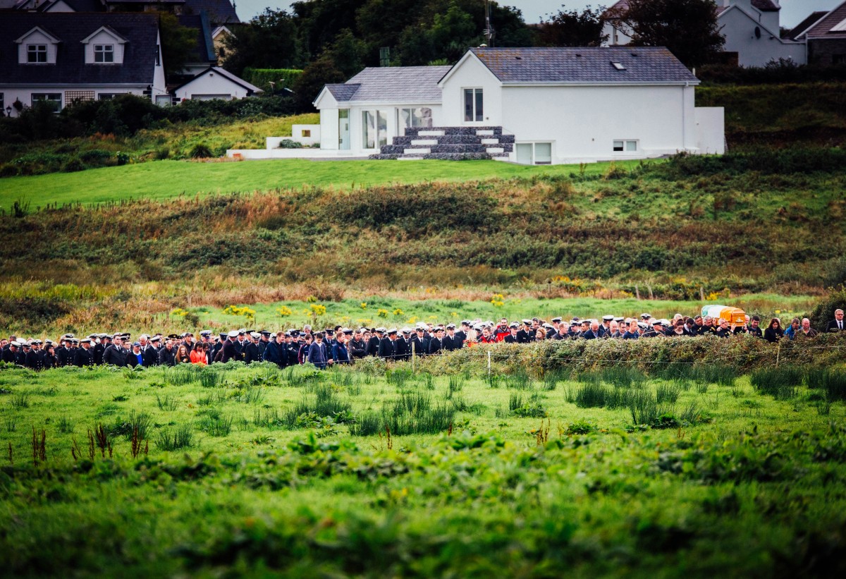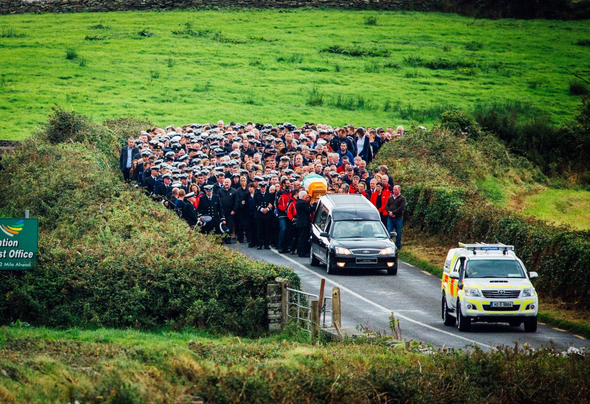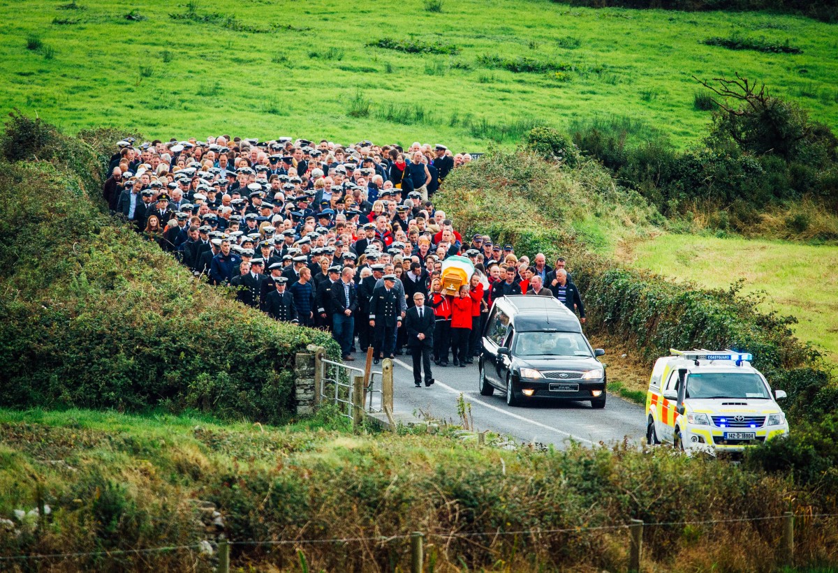 A massive number of Irish Coast Guard volunteers and fulltime staff attended the funeral along with emergency services personnel from across Ireland and the UK.