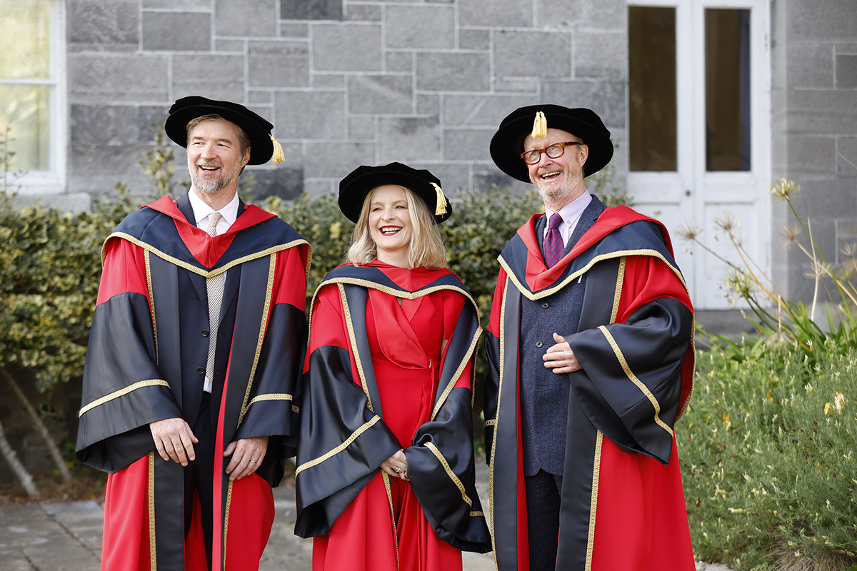 The Doctor of Philosophy (Honoris Causa) is the highest award that the University can bestow and were presented as part of the University’s annual Autumn Graduations Mick O’Dea as well as New York Times journalist Declan Walsh and entrepreneur and broadcaster Áine Kerr.