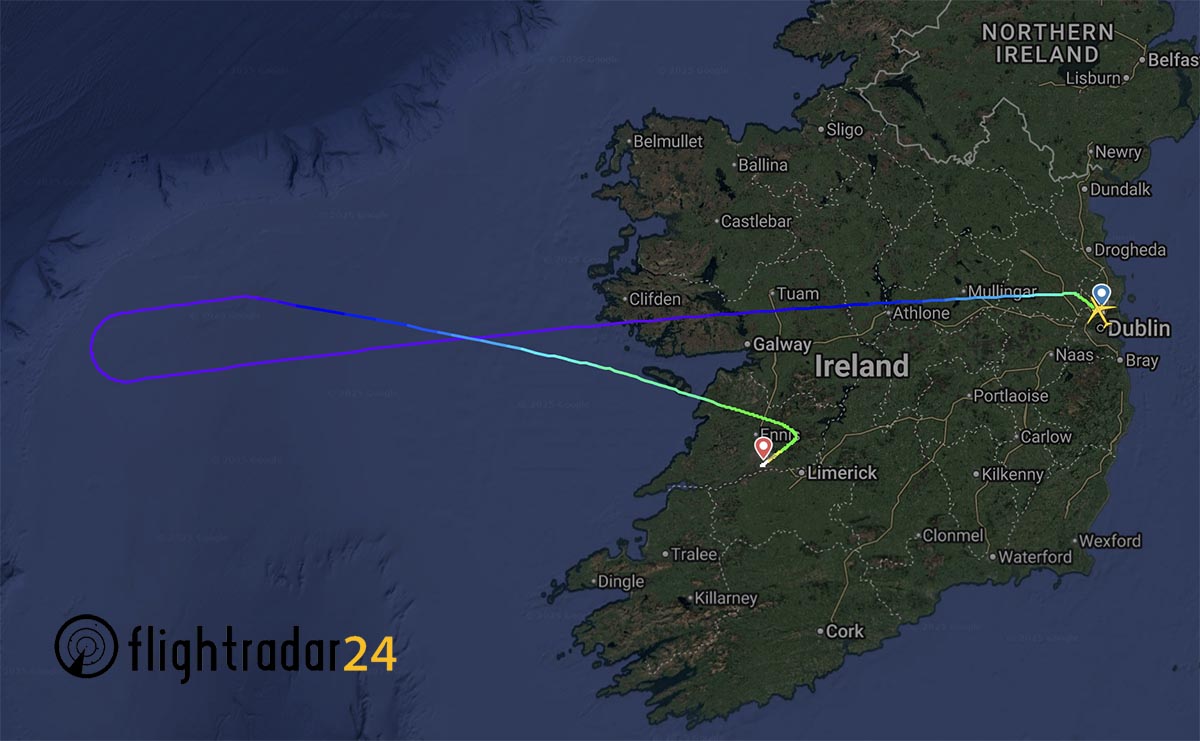The Airbus A330-200 jet was about 45 minutes into its journey and 300 kilometres west of the Ireland when the flight crew advised air traffic controllers that they might have be turning back and diverting.