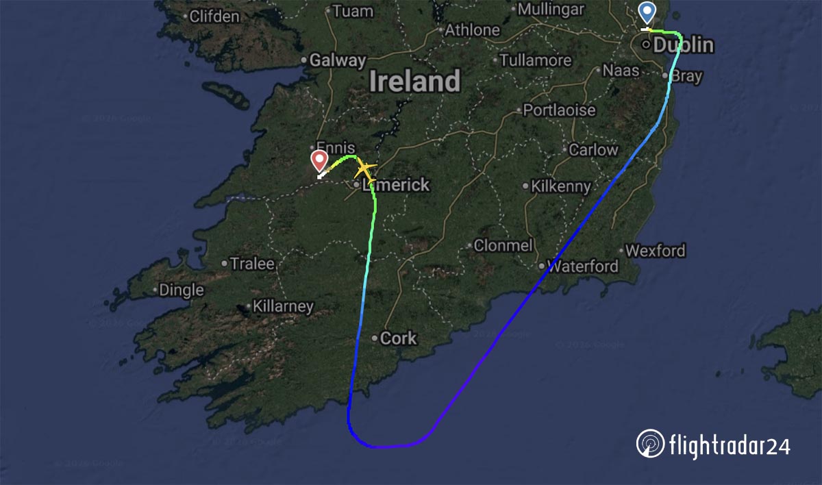 The airport’s fire and rescue service was alerted and placed on standby as a precaution after the crew confirmed they would be making an overweight landing. This is a standard procedure at Shannon for such landings.