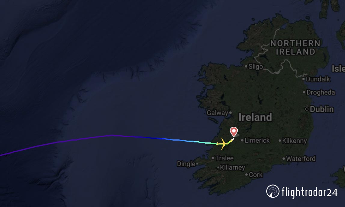 When the flight was about an hour west of Ireland, the crew made contact with air traffic controllers here and advised them of their situation.