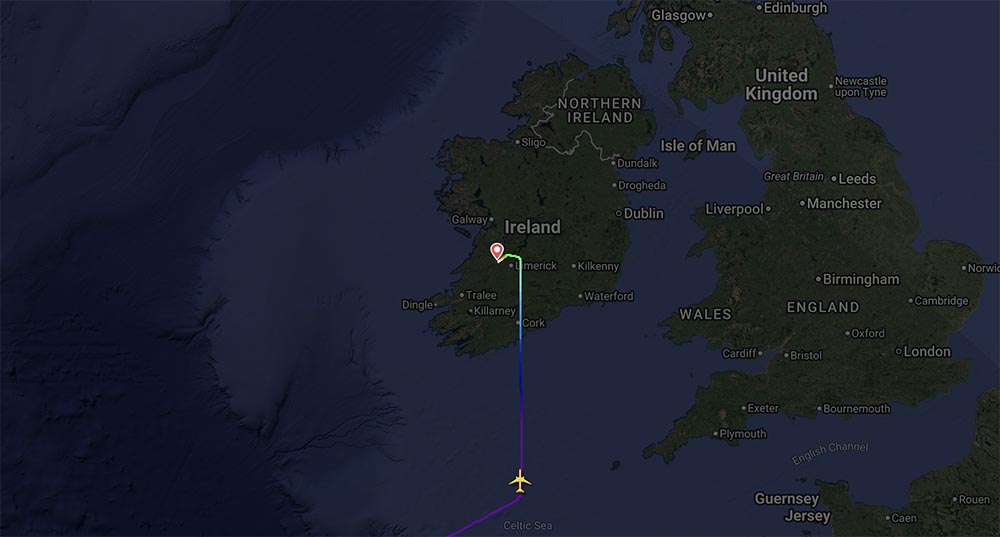 Shortly before 3.30am, while the Boeing 777-306(ER) jet was about 100 kilometres south of Ireland, the crew declared a medical emergency.