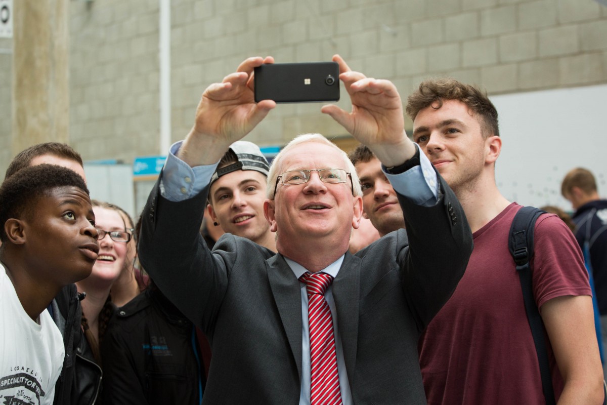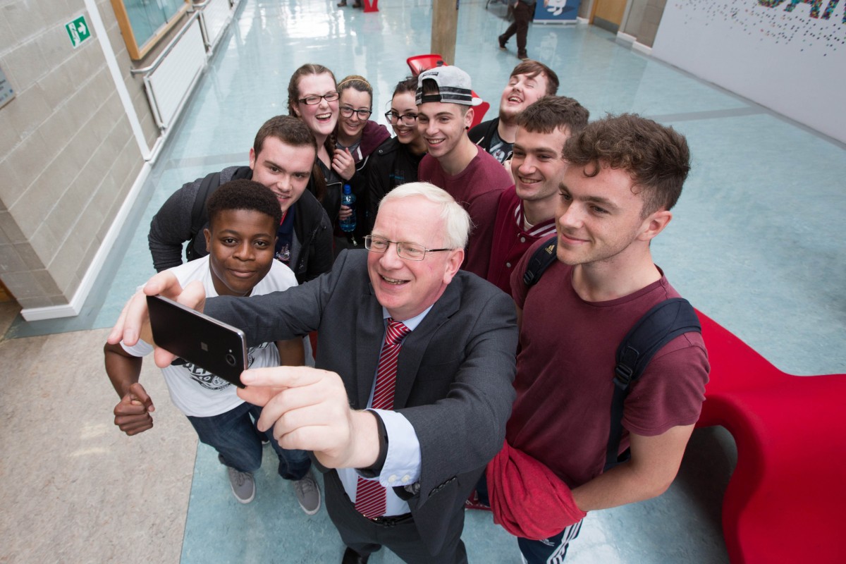 LIT President, Vincent Cunnane takes a selfie with new students. Pic: Sean Curtin