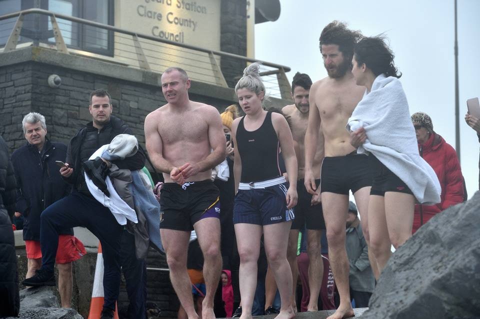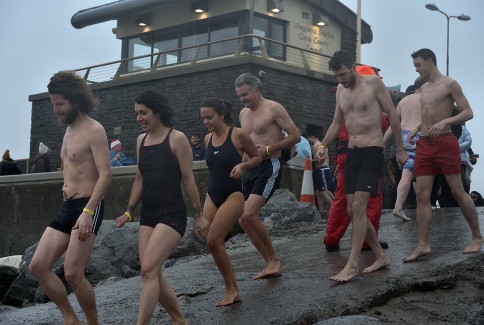 Several beaches across Clare hosted Christmas Day swims. An ongoing bathing prohibition in Kilkee meant the swim had to be cancelled.