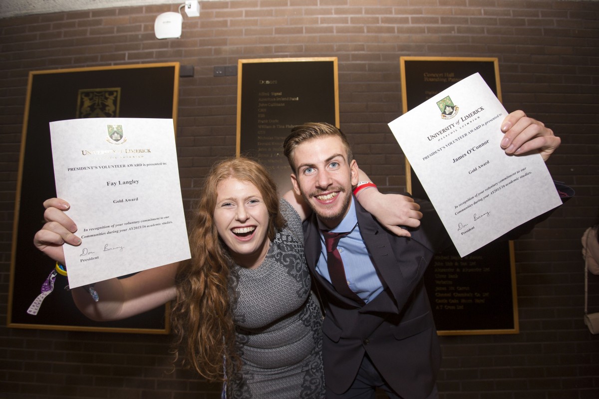 Speaking at the event, UL President, Professor Don Barry said: “The President’s Volunteer Award ceremony is a very special occasion as it offers us a wonderful opportunity to recognise the voluntary contributions our students are making to the broader community. During this past academic year UL students contributed over 17,000 hours to volunteering work”.