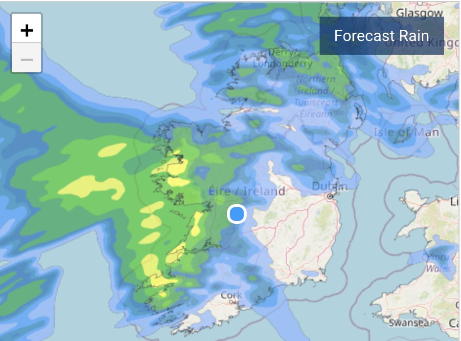 On Monday, there will be further spells of rain, heavy at times. Highest temperatures of 13 to 15 degrees with fresh to strong southwesterly winds. On Monday night, rain will continue for a time, but will mostly clear overnight with showers following from the west. Lowest temperatures of 10 to 13 degrees with fresh southwesterly winds.