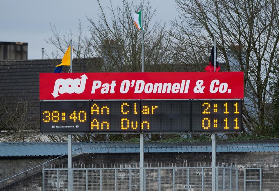 Doonbeg’s David Tubridy pointed from a tight angle to push Clare four in front on twelve minutes and Marc Reid had to be alert shortly after to deny Eoin Cleary a green flag. Two Jamie Malone points were sandwiched between a Shay Millar white flag at a cold Cusack Park.